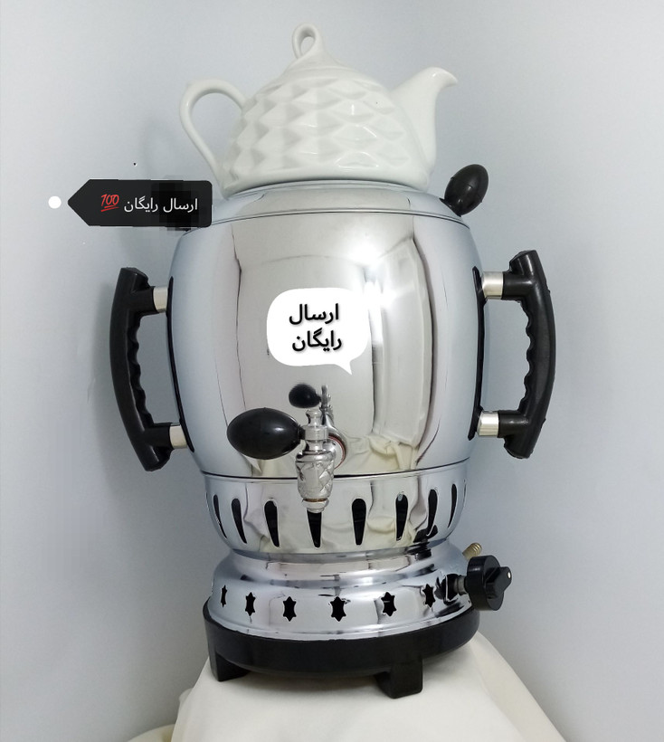 1سال ضمانت ✔️ شش لیتری، بدون تنوره، جنس برنج ✔️ سماور همراه قوری (چینی)